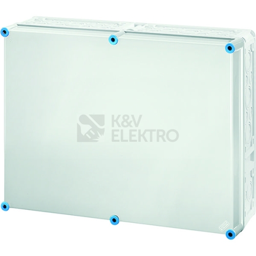 Skříně pro montáž kombinací energetických spínačů do 630 A nebo jako jednotlivé skříně. Z vysoce kvalitního polykarbonátu s ochrannou izolací. Stěnové průchodky s velkými otvory pro elektrické připojení skříní. Kabelové vstupy na všech stěnách skříní přes metrické předlisy nebo montážní příruby. Skříně pro upevnění na stěnu také pomocí vnějších patek nebo s montážními lištami. Prázdná skříň s neprůhledným víkem. Montážní rozměry š 575 mm x v 425 mm x h 150 mm. Pro montáž přístrojů na montážní desku nebo na nosnou lištu DIN. Max. vestavná hloubka při zabudované montážní desce 146 mm, při zabudované nosné liště 135 mm. Uzávěry víka otevíratelné pomocí nástroje.
