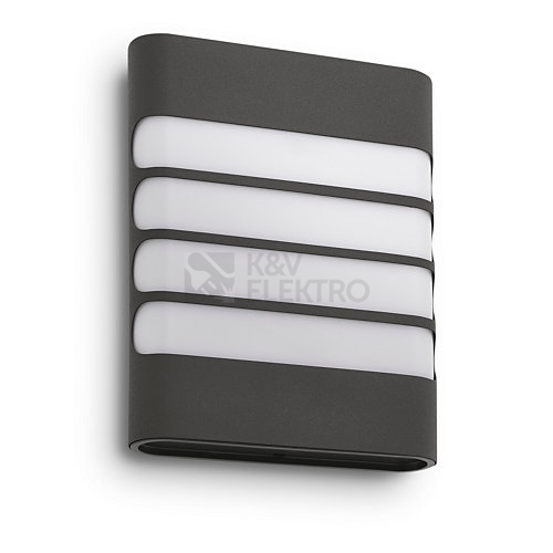 Nástěnné svítidlo Philips myGarden Raccoon ve strukturované antracitově šedé barvě jasně osvětlí venkovní plochy pro jakýkoli účel. Světla LED, syntetické materiály a minimalistický design dodají venkovnímu prostoru moderní vzhled.