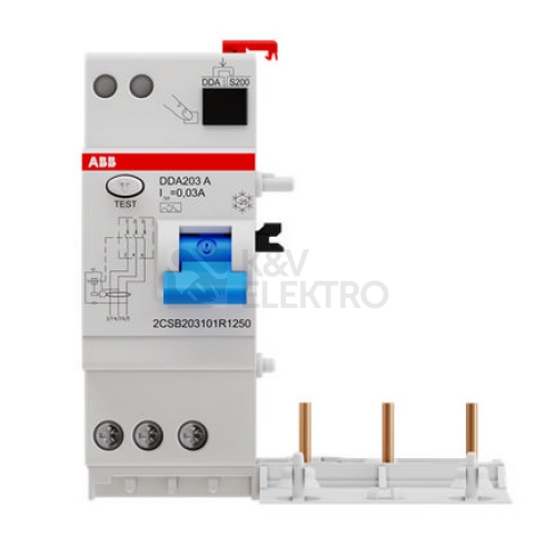 DDA203A-25/0,03, chráničový blok, třípólový, jmenovitý proud: 25 A, citlivost: 30 mA, Typ A – pro střídavý a pulzující stejnosměrný reziduální proud (určeno pro 1f obvody s usměrňovači)