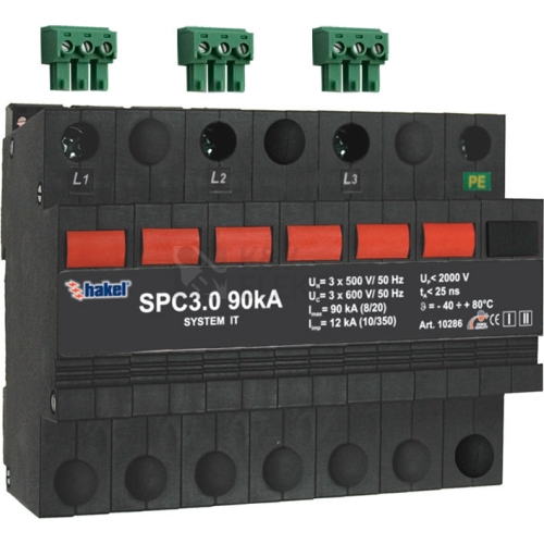 Svodič bleskového proudu a přepětí typu 1+2 navržená pro sítě IT 3 x 500 V AC bez vyvedeného středního vodiče. Doporučené použití je v těžkém průmyslu, ve válcovnách, strojírnách apod. Poloha aplikovaného SPD HAKEL, může být horizontální, vertikální, otočená o 90 i 180 stupňů a tato funkce neovlivňuje funkci SPD ani uvedené parametry.Označení DS specifikuje provedení s dálkovou signalizací.