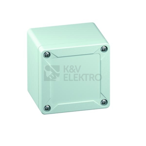 Prázdná skříň, se stupněm krytí IP66/IP67, polykarbonát, Certifikováno podle DLG (odolnost vůči čpavku), UL (UL 508 & CSA C22.2 No. 14-13, UL 50 & CSA 22.2 No. 94.1-7 & UL 50E & CSA C22.2 No. 94.2-7), Ui=690V AC, Ui=1000V DC, Vnitřní místa pro připevnění, pro instalace v průmyslovém prostředí a chráněném venkovním prostředí, s rychlouzávěrem, Krabice: polykarbonát, šedá, Víko: polykarbonát, šedá, hladké boky, Rozměry: 84 x 82 x 85mm, Přiložené příslušenství: pojistka proti ztrátě víka, 4 upevňovací šrouby pro příslušenství