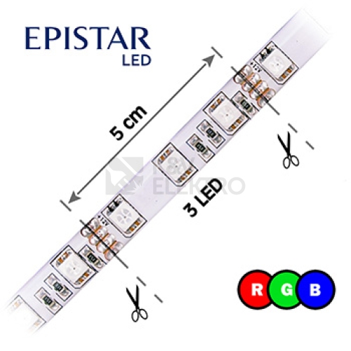 Flexibilní pásek s LED SMD diodami, efektivně vyzařujícími světlo, je vhodný pro dekorativní nasvícení interiérů, náročné osvětlovací systémy, ale i pro reklamní účely. Velkou předností je velká svítivost a napájení malým napětím 12 V DC (příp. 24 V DC, dle typu) a snadné ovládání pomocí volitelných spínačů, stmívačů či ovladačů. Díky sério-paralelnímu zapojení lze pásek jednoduše dělit po jednotlivých modulech. Pro snadnou montáž je jedna strana pásku opatřena oboustrannou lepící páskou firmy 3M.Technické parametry: Příkon (W): 14.4 Světelný tok (lm): 980 Vlnová délka: 620/520/470 nm Počet LED/m: 60 LED/m Typ LED čipu: 5050 Výrobce LED čipu: Epistar Vyzařovací úhel: 120° Index podání barev: Ra > 80 Krytí: IP65 Pracovní teplota: -25 °C až +50 °C Napájecí napětí: 12 V DC Počet LED / Délka modulu: 3 LED / 5 cm Rozměry: 10 x 2,6 mm Balení: 20 m