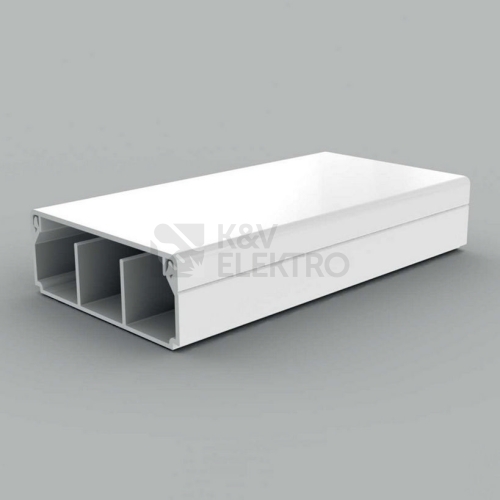 Lišta hranatá LH 50x20, bílá, 2 m, karton. Klasický tvar. Určena pro montáž na stěnu, nebo na strop. Dvojitý zámek víka zvyšuje tuhost lišty a zajišťuje pevnější fixaci víka. Dvě integrované příčky.