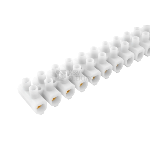 Svorkovnice instalační lámací EKL 5 E-SVCE - 12 pólová, průřez vodiče 16-35mm2, barva bílá, mosazná, napětí 750V, jmenovitý proud 125A, rozměr 211x29,6x36,4mm
