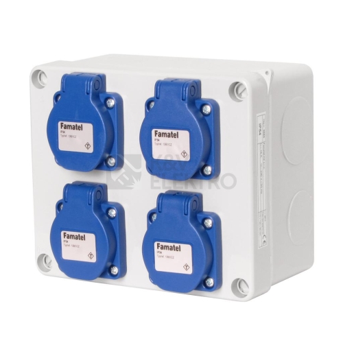 Krabice 3065 IP54 4x230V s ochr. kolíkem, 170x140x90mm, hladké bokyZásuvková krabice s hladkými boky v krytí IP54, rychlá a jednoduchá montáž, odolnost proti mechanickým nárazům IK08, pro nástěnnou montáž (na omítku), barva šedá, samozhášivý, bezhalogenní UV odolný materiál, s připojovací svorkovnicí, otvory do krabice se provádějí vyvrtáním otvoru a následně se osadí vývodka (např. plastová šroubová M16). Splňuje požadavky norem ČSN EN 60670-22, zkouška žhavou smyčkou 650°C (pro montáž na hořlavé podklady doporučujeme použití nehořlavé podložky), pro rozsah teplot od -25°C do +85°C.