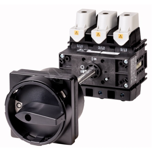 Hlavní spínač/vypínač podle IEC/EN 60947-3, 690 V, stupeň krytí vpředu IP65, rukojeť černá s blokovacím věncem černým, uzamykatelná s 3 visacími zámky oddělovací vylínače P5 jsou velmi kompaktní a robustně stavěné. Ruční pohon působí na kontakty v přímém spojení. Při vypnutí se kontakty nuceně otevřou.