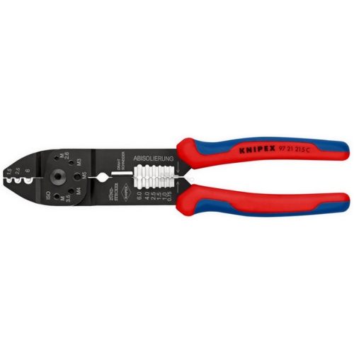 Ke stříhání kabelů, odizolování drátů a lisování izolovaných a neizolovaných kabelových ok a konektorů a otevřených konektorů. S otvory se závitem ke stříhání měděných nebo mosazných závitových kolíků s M 2 ,6- M 3- M 3,5- M 4 a M 5. šroubovaný kloub pro vysokou stabilitu a rovnoměrný chod. Speciální ocel, vysoce pevná.
