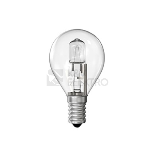 Halogenová standardní žárovka o výkonu 28W s menším závitem. Velikost žárovky je 75mm a průměr 45mm. Tuto žárovku lze instalovat do patice E14. Napětí napájecího zdroje je standardních 230V. Tato žárovka je náhradou za obyčejnou žárovku 40W.