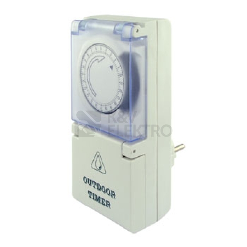 Tyto jednoduché mechanické spínací hodiny s 24hodinovým cyklem jsou vhodné do vlhkých místností i pro venkovní použití, neboť jsou vybaveny ochranou proti stříkající vodě a působení prachu.Technické parametry: Provozní napětí: 230 V / 50 Hz Max. spínaný příkon: 3600 W Max. spínaný proud: 16 A (2 A) Nejkratší spínaná doba: 15 minut Nejdelší spínaná doba: 24 hodin Krytí: IP44 Provozní teplota: - 25 až + 50 °C Rozměry bez zástrčky (d x š x v): 157 x 75 x 45 mm