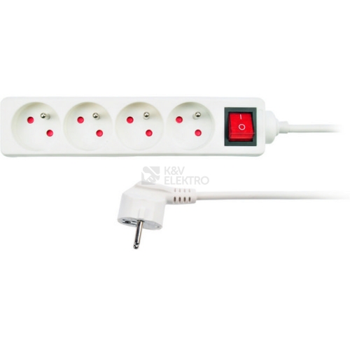 počet zásuvek: 4 průřez vodičů: 3 x 1mm2 typ kabelu: H05VV-F3 lomená vidlice barva: bílá délka: 3m 230V/10A vypínač