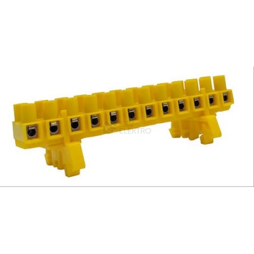 Dvanáctipólové svorkovnice mají tělo zhotovené z polyamidu PA 6 žluté barvy, upraveného proti hoření, do něhož je vloženo 12 mosazných pouzder. Tento typ přístrojových šroubových svorkovnic s hranatým pouzdrem se vyznačuje pevnějším plastovým pouzdrem. Svorkovnice jsou vhodné pro vodiče s pevným jádrem, tak i pro slaněné vodiče, které není nutné opatřit dutinkou. Pod jedním šroubem lze upevnit jeden vodič. Otvory v těle svorkovnice umožňují její montáž na podložku, při použití varianty s adaptérem lze svorkovnici upevnit i na TH lištu.