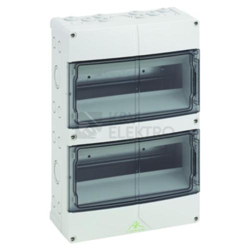 Malý rozvaděč, se stupněm krytí IP65, 2 Řady, 24 modulů, dimenzované provozní napětí: 400V AC, dimenzované izolační napětí: 1000V AC, 1000V DC, nahoře a dole metrické předlisy pro univerzální vstup vodičů se šroubením a / nebo dvojitými membránovými vývodkami, nahoře s předmontovanými pružnými průchodkami DMS M20, s upínací lištou PE/N vždy se 2 místy upnutí 16mm² a 14 místy upnutí 6mm², Rozměry: 250 x 370 x 122mm, Přiložené příslušenství: Dvojitá membránová vývodka: 2x M20, 1x M32, Zaslepovací zátky, Krycí a popisovací pásky