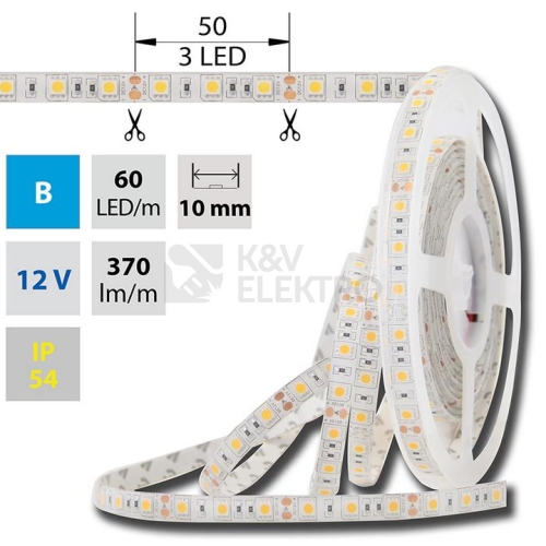 LED pásky jsou moderním osvětlovacím prvkem, podporujícím netradiční metody osvětlení interiérů a exteriérů. LED jsou moderní světelný zdroj použitelný v mnoha oborech ať již v průmyslu, reklamě nebo domácnosti. Flexibilní LED pásek navodí příjemnou atmosféru domova na schodištích v obýváku i v ložnici. LED pásek SMD5050, 460-475nm (modrá), 14,4W, 60LED, 370lm, segment 50mm, 3LED/segment, IP54, DC 12V, životnost 35000h, šíře 10mm, bílý PCB pásek, max. délka pásku při jednostranném zapojení: 5m, opatřen samolepící páskou 3M. Hledáte LED pásek v teplé bílé? Nebo dáváte přednost neutrální či studené bílé barvě světla? V nabídce máme také multibarevné RGB LED pásky. Podívejte se na všechny LED pásky v našem sortimentu i ostatní světelné zdroje.