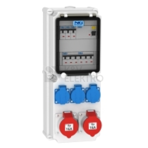 Zásuvka 2x CEE 32A 5p 400V, 3x 16A 230V, chránič 4p, jističe
