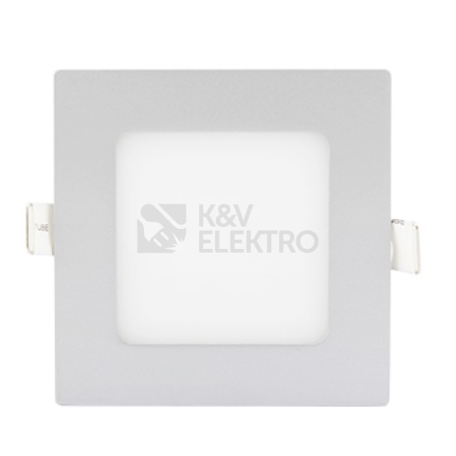 Elegantní LED svítidlo pro montáž do sádrokartonových a minerálních podhledů do stěny či na strop. Vzhledem k použitým materiálům a matnému difuzoru je docíleno příjemného rozptýleného světla, které neoslňuje. To vše podtrhuje LED 2835 technologie díky které je dosaženo velké světelné účinnosti, nízké spotřebě energie a dlouhé životnosti.Technické parametry: Barva světla: teplá bílá Světelný tok: 540 lm Teplota bílé: 3500 K Příkon: 6 W Životnost LED: > 50 000 hodin LED: 30 x 2835 SMD Napájecí napětí: 230 V / 50 Hz Vnější rozměr: 120 x 120 x 12 mm Montážní otvor: 105 x 105 mm Barva svítidla: stříbrná