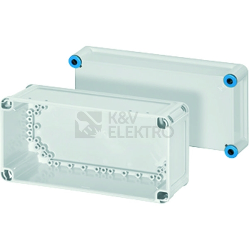 Skříně pro kombinace spínacích zařízení nízkého napětí. Z vysoce kvalitního polykarbonátu s ochrannou izolací. Pro montáž přístrojů na montážní desku nebo na nosnou lištu DIN. Uzávěry víka otevíratelné pomocí nástroje. Prázdná skříň s šedým víkem. Montážní rozměry š 275 mm x v 125 mm x h 150 mm.