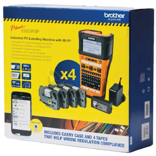 Popisovač štítků - tiskárna Brother PTE550WSPYJ1 promo - 4 pásky zdarma Speciální akční balení PT-E550WVP + 4 pásky navíc (TZe-FX231, TZe-241, TZe-251, TZe651). Ruční tiskárna samolepících štítků, pro pásky 3.5, 6, 9, 12, 18 a 24 mm., nástupce PT-7600VP Parametry: Typ kazety TZe, HGe, HSe (teplotně smršťovací trubička) Rychlost tisku 30 mm/s Rozlišení 180 dpi Před prvním použitím jakékoli kazety s bužírkou HSE-xxxE je nutné udělat na tiskárně PT-E550W aktualizaci firmware, kterou naleznete zde. Jinak tiskárna tuto kazetu HSE-xxxE nerozpozná! Specifikace Klávesnice 70 pryžových kláves QWERTY/QWERTZ/AZERTY Numerická klávesnice Ano Interface USB, Wi-Fi Podpora OS Microsoft Windows® Vista, Windows® 7, Windows® 8, Mac OS/X 10.7to 10.9. Typ displeje Podsvícený monochromatický grafický LCD s náhledem štítku Rozlišení displeje 16 znaků, 3 řádky / 128 x 64 bodů maximální výška tisku 18,0 mm Typ odstřihu Automatický plný odstřih / poloodstřih (s vlastností pozastavení odstřihu) (fluorový potah pro odstřih vysoce přilnavých pásek) Délka štítku od 15 mm do 999 mm Počet řádků štítku Maximálně 7 (pro pásku o šířce 24mm) Vertikální tisk Ano Zrcadlový tisk Ne Kopiový tisk 1 až 99 Automatická řada Ano (1 – 99 členů: normální, současná, rozšířená) Fonty Helsinki Brussels US Los Angeles San Diego Florida Calgary Belgium Atlanta Adams Brunei Sofia Germany Letter Gothic Styly písma normální tučný obrysový stínový plný kurzíva tučná kurzíva obrysová kurzíva stínová kurzíva plná kurzíva Velikost písma: 6, 9, 12, 18, 24, 36, 42, 48 bodů Symboly 384 Rámečky 7 Čárové kódy 9 / CODE39, ITF 2/5, EAN13, EAN8, UPC-A, UPC-E, CODABAR, GS1-128 (UCC/EAN128), CODE128 Obsah balení Tiskárna štítků PT-E550WVP praktický kufřík pásky TZe-FX231, TZe-241, TZe-251, TZe-651 adaptér dobíjecí akumulátor Jazyková podpora Čeština, slovenština, maďarština, polština, angličtina, němčina, francouzština a další Tato řada podrobných videí ukazuje, jak používat zařízení PT-E550WVP pro tvorbu štítků z tiskárny štítků nebo prostřednictvím aplikace. ##VIDEO:https://www.youtube.com/embed/bsgOJGgGAFk## ##VIDEO:https://www.youtube.com/embed/99vSaglTQrA## ##VIDEO:https://www.youtube.com/embed/decvlVeIReQ## ##VIDEO:https://www.youtube.com/embed/PSotpCyNL_A## ##VIDEO:https://www.youtube.com/embed/WV5alc5cnKU## ##VIDEO:https://www.youtube.com/embed/tCVAlmYaK-M## ##VIDEO:https://www.youtube.com/embed/Qdx58HWF8G4## ##VIDEO:https://www.youtube.com/embed/aum8mkx7ELY## ##VIDEO:https://www.youtube.com/embed/jMjxCjJz4h0## ##VIDEO:https://www.youtube.com/embed/Nw0M74GaMTk##