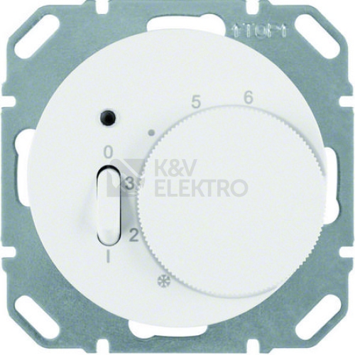 Termostat, pokojový se spínacím kontaktem, centrálním dílem, vypínačem a LED, Berker R.1/R.3, bílá, lesk