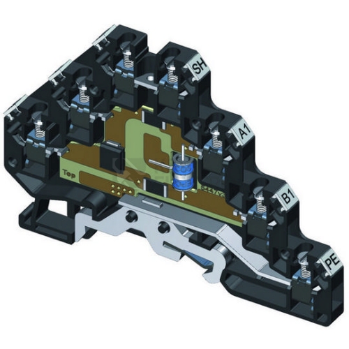 Vazební impedance – odpor, šroubové svorky, dvoustupňová přepěťová ochrana dvoužilových signálových linek, instalace těsně před chráněné zařízení, k ochraně rozhraní řídicích systémů MaR, EZS, EPS apod., zejména měřicích smyček, před pulsním přepětím, proti podélnému přepětí (žíla–ochranná zem) hrubá ochrana a proti příčnému přepětí (žíla – žíla) hrubá i jemná přepěťová ochrana