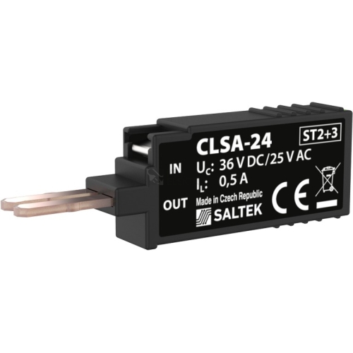 Pro lišty LSA-PLUS rozpojovací, dvoustupňová přepěťová ochrana dvoužilových signálových linek, instalace těsně před chráněné zařízení, k ochraně rozhraní řídicích systémů MaR, EZS, EPS apod., zejména měřicích smyček, před pulsním přepětím, proti podélnému přepětí (žíla–ochranná zem) hrubá ochrana a proti příčnému přepětí (žíla – žíla) hrubá i jemná přepěťová ochrana