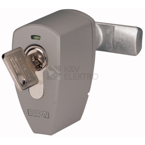 Komfortní otočná rukojeť k zachycení standardizovaného cylindrického zámku, páka z kvalitního nárazuvzdorného zinkového tlakového odlitku , se závorou, s integrovaným ukazatelem uzavřené polohy, práškově lakovaná prachově šedá RAL 7037, cylindrický zámek si prosím objednejte samostatně