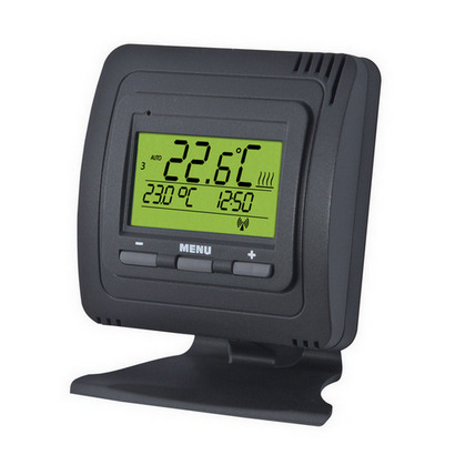 Ve spojení s přijímači BPT001, BPT002, BPT003, může ovládat jak elektrické topení (infrapanely,přímotopy), tak i kotle na plyn nebo tuhá paliva.. Provedení antracit, zelený podsvícený LCD a designový stojánek.