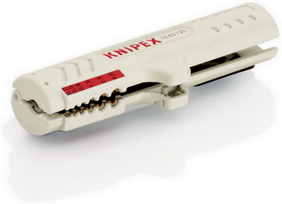 K odizolování datových kabelů UTP a STP s Ø 4,5 až 10,0 mm. Nástroj pro odizolování pro průřezy 0,2 / 0,3 / 0,8 / 1,5 / 2,5 / 4 mm². Dvoudílný otevírací nástroj pro odizolování. S otevírací pružinou a zavírací pojistkou. Aretace v uzavřené poloze. Těleso: plast, vyztužen optickými vlákny. čepele: speciální nástrojová ocel, kalená v oleji, s potahem TiN.