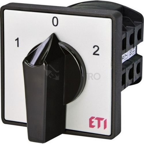 3-pólový přepínač s 60° přepínacím úhlem Výhody: dobrá schopnost zapínání a vypínání elektrická a mechanická vytrvalost malé rozměry Vačkové spínače značky ETI jsou v souladu s mezinárodními a národními standardy jako: IEC / EN 60947-3, VDE 0660, EN 60947 TS-3, BS 5419 atd.