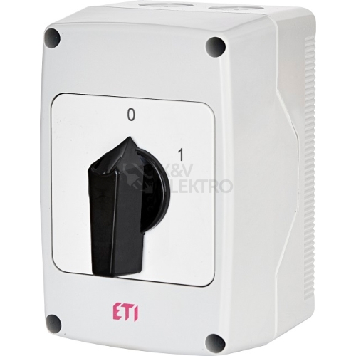 3-pólový ON-OFF spínač v pouzdře s 60° přepínacím úhlem Výhody: dobrá schopnost zapínání a vypínání elektrická a mechanická vytrvalost malé rozměry Vačkové spínače značky ETI jsou v souladu s mezinárodními a národními standardy jako: IEC / EN 60947-3, VDE 0660, EN 60947 TS-3, BS 5419 atd.