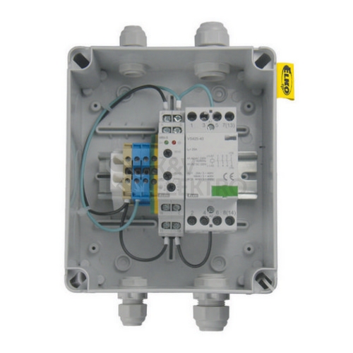Hladinový spínač kontroluje hladiny ve studnách, jímkách, nádržích, tankerech, zásobnících a na základě údajů automatizuje provoz čerpadla. POPIS Dodáván jako zapojený komplet hladinového relé HRH-5 a stykače VS425, čímž umožňuje snadnou instalaci. Určeno pro automatický chod 1-fázových i 3-fázových čerpadel. Lze volit mezi funkcí dočerpávání a odčerpávání. Nastavitelné zpoždění (0,5-10s). Jednotka nemá vlastní jištění – nutno předřadit vhodný jistící prvek. TECHNICKÉ PARAMETRY Napájecí napětí AC/DC 24 V nebo AC/DC 230 V. Výstupní kontakt: 4x spínací 25 A (AgNi). Nastavitelná citlivost: 5-100 k?. Jednotka je umístěna v plastové skříni, v krytí IP55.