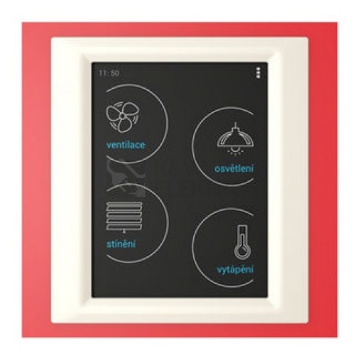 Bezdrátová dotyková ovládací jednotka RF Touch je centrálním ovládáním pro vytápění, spínání elektrospotřebičů a zařízení, stmívání světel, ovládání žaluzií. POPIS Vysílá a přijímá povely od prvků, zpracovává nastavené programy pro automatickou regulaci. Lze kombinovat až s 40 prvky iNELS RF Control + 30 detektory Oasis (instalaci můžete postupně rozšiřovat od 1 prvku). Obousměrná komunikace, vysílá a přijímá povely a zobrazuje status prvků. Automatické ovládání na základě týdenního programu. Barevné kombinace RF Touch (lze vybrat na eshopu): Rámečky v základním plastovém provedení (bílá, černá, červená) nebo v luxusním designu LOGUS90 - sklo, kov (hliník, nikl, titan). Mezirámečky v základní bílé a tmavě šedé barvě nebo s metalickým nástřikem hliníkové, perleťové, ledové a šedé. Zadní kryt pro RF Touch-W vybírejte ze škály barev bílá, slonová kost, světle šedá, tmavě šedá. TECHNICKÉ PARAMETRY Napájecí napětí AC 100 – 230 V. Dotykový 3,5 palcový barevný TFT LCD displej. Dosah 100m (volné prostranství), v případě nedostatečného signálu mezi ovladačem a prvkem použijte opakovač signálu RFRP-20. Komunikační frekvence (868MHz, 866MHz, 916MHz, 922MHz) s obousměrným protokolem RFIO nebo RFIO2. RFIO2 je inovovaný bezdrátový komunikační protokol systému iNELS RF Control, který přináší větší stabilitu a el iminuje kolizi signálů mezi jednotlivými prvky. Montáž na zeď – s upevněním na instalační krabici nebo přilepením na sklo, dřevo, sádrokarton.