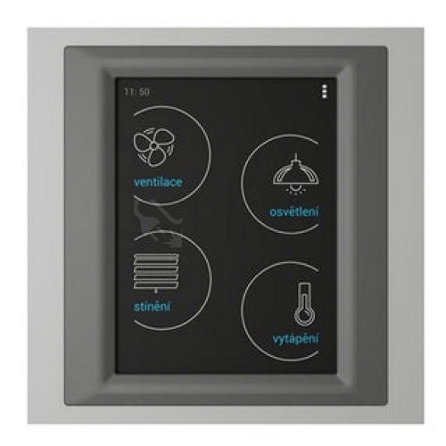 Bezdrátová dotyková ovládací jednotka RF Touch je centrálním ovládáním pro vytápění, spínání elektrospotřebičů a zařízení, stmívání světel, ovládání žaluzií. POPIS Vysílá a přijímá povely od prvků, zpracovává nastavené programy pro automatickou regulaci. Lze kombinovat až s 40 prvky iNELS RF Control + 30 detektory Oasis (instalaci můžete postupně rozšiřovat od 1 prvku). Obousměrná komunikace, vysílá a přijímá povely a zobrazuje status prvků. Automatické ovládání na základě týdenního programu. Barevné kombinace RF Touch (lze vybrat na eshopu): Rámečky v základním plastovém provedení (bílá, černá, červená) nebo v luxusním designu LOGUS90 - sklo, kov (hliník, nikl, titan). Mezirámečky v základní bílé a tmavě šedé barvě nebo s metalickým nástřikem hliníkové, perleťové, ledové a šedé. Zadní kryt pro RF Touch-W vybírejte ze škály barev bílá, slonová kost, světle šedá, tmavě šedá. TECHNICKÉ PARAMETRY Napájecí napětí AC 100 – 230 V. Dotykový 3,5 palcový barevný TFT LCD displej. Dosah 100m (volné prostranství), v případě nedostatečného signálu mezi ovladačem a prvkem použijte opakovač signálu RFRP-20. Komunikační frekvence (868MHz, 866MHz, 916MHz, 922MHz) s obousměrným protokolem RFIO nebo RFIO2. RFIO2 je inovovaný bezdrátový komunikační protokol systému iNELS RF Control, který přináší větší stabilitu a el iminuje kolizi signálů mezi jednotlivými prvky. Montáž na zeď – s upevněním na instalační krabici nebo přilepením na sklo, dřevo, sádrokarton.