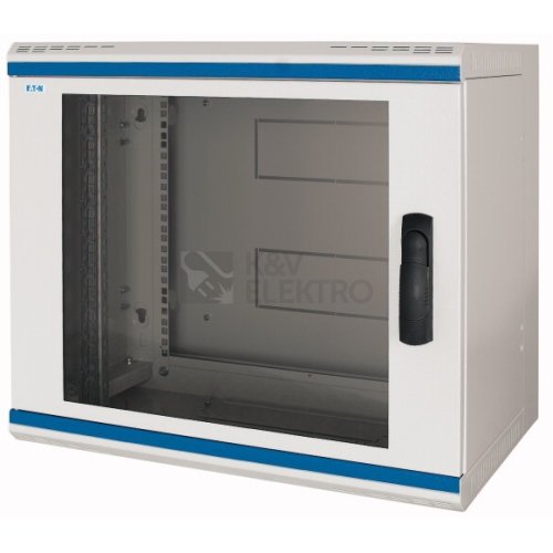 Nástěnná skříň: 2dílné, přestavitelná 19z sběrnice vpředu Aktivní větrání díky zaslepovacím deskám, kryt a zadní díl s velkými otvory nahoře a dole pro přívod vedení, materiál: ocelový plech práškově lakovaný, barvy: kryt RAL 7035, clony RAL 5021, stupeň krytí: IP 30 podle normy EN 60529/ IEC 529, uzemnění: typ krytí I EN 60950