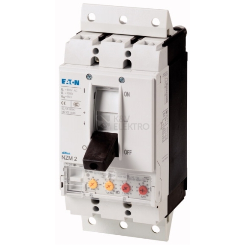 Výkonové jističe řady NZM..-VE pokrývají pouze čtyřmi kompaktními konstrukčními velikostmi všechny případy použití a jsou vhodné pro trh IEC. Montáž je vždy pružná díky modulárním funkčním skupinám. S elektronickým spouštěčem na ochranu zařízení a kabelů, selektivní ochrana a ochrana generátoru. Ochrana proti přetížení a ochrana proti zkratu bez zpoždění nebo s krátkodobým časovým zpožděním. Upozornění: měření efektivní hodnoty a tepelná paměť, nastavitelný stupeň setrvačnosti tr: 2-20 s při 6xIr a nekonečném (bez spouště při přetížení), nastavitelná doba zpoždění tsd: stupně: 0, 1000 ms, konstantní funkce i2t: pevné VYP