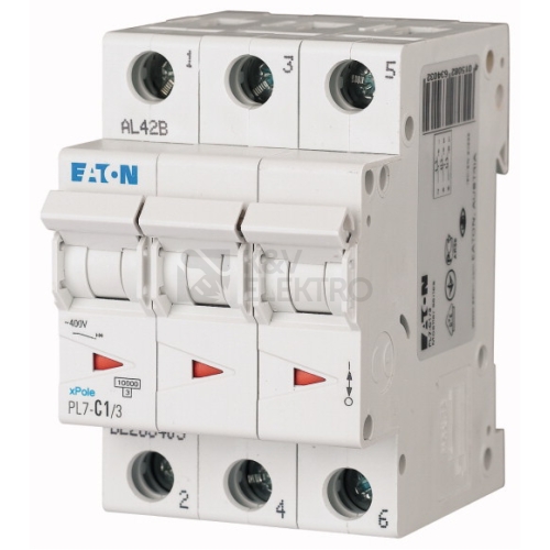 Jistič vedení PL7-B1/3 3-pólový vypínací charakteristika: B Jmenovitý proud In: 1 A Vypínací schopnost (IEC/EN 60947-2): 10 kA Pro jištění spínacích přístrojů pro bytovou výstavbu a účelové stavby