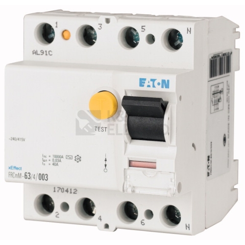 Proudový chránič FRC (norma UL), typ G/A, 4-pólový, Idn=0,3A, In=63A, Ir=3kA (IEC 61008)