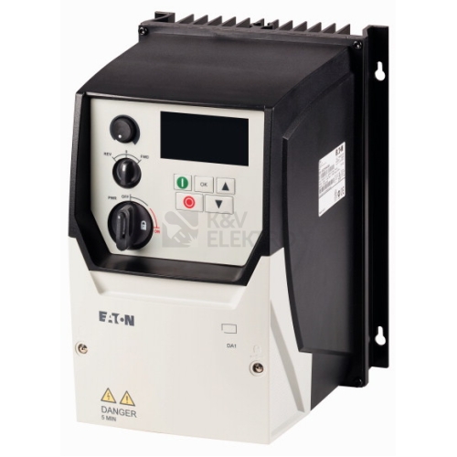 Frekvenční měnič, Označení typu: DA1, Jmenovité provozní napětí: Ue = 230 V AC, 3fázový, 240 V AC, 3fázový, Výstupní napětí při Ue: U2 = 230 V AC, 3fázový, 240 V AC, 3fázový, Síťové napětí (50/60Hz): ULN = 200 (-10%) - 240 (+10%) V, Jmenovitý pracovní proud při přetížení 150 %: Ie = 10.5 A, Upozornění: Jmenovitý provozní proud při spínací frekvenci 16 kHz a teplotě prostředí +40 °C, Upozornění: Cyklus přetížení po 60 s každých 600 s, Přiřazený jmenovitý výkon motora Upozornění: pro normální čtyřpólové třífázové asynchronní motory s vnitřním a vnějším chlazením s počtem otáček 1500 min-1 při 50 Hz nebo 1800 min-1 při 60 Hz, Cyklus přetížení po 60 s každých 600 s, při 230 V, 50 Hz, Přiřazený jmenovitý výkon motora Přetížení 150 %: P = 2.2 kW, Přetížení 150 %: IM = 8.7 A, Přiřazený jmenovitý výkon motora Upozornění: při 220 - 240 V, 60 Hz, Přiřazený jmenovitý výkon motora Přetížení 150 %: P = 3 HP, Přiřazený jmenovitý výkon motora Přetížení 150 %: IM = 9.6 A, Stupeň krytí: IP66/NEMA 4X, Rozhraní/provozní sběrnice (integrovaná): OP-Bus (RS485)/Modbus RTU, CANopen®, Komunikační karta (volitelně): Ethernet IP, DeviceNet, PROFIBUS, PROFINET, Modbus-TCP, EtherCAT, Vybavení: Odrušovací filtr, Brzdový střídač, dodatečná ochrana plošných spojů, OLED indikátor, Lokální ovládací prvky, Konstrukční velikost: FS2, Normy a ustanovení: Všeobecné požadavky: ČSN EN 61800-2, Požadavky EMC: ČSN EN 61800-3, Požadavky na bezpečnost: ČSN EN 61800-5-1