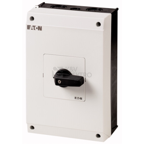 Vačkové spínače podle IEC/EN60947-3, konstrukční velikost T5B, 690 V/63A, stupeň krytí vpředu IP65, T-rukojeť, konstrukční formy všeobecně: Skříňky pro povrchovou montáž z izolačního materiálu, montáž základní montáž. Výkonové, robustní a kompaktní vačkové spínače T se používají v průmyslu, řemeslech i technickém vybavení budov. Na výběr je celá řada standardních obvodů. Jako doplněk se realizují zvláštní obvody specifické pro jednotlivé zákazníky. Zde jsou možnosti téměř neomezené. Program spínačů doplňuje rozsáhlé příslušenství a doplňuje možnosti využití. Všechny proudové dráhy jsou vybaveny dvojitě přerušovanými kontakty.