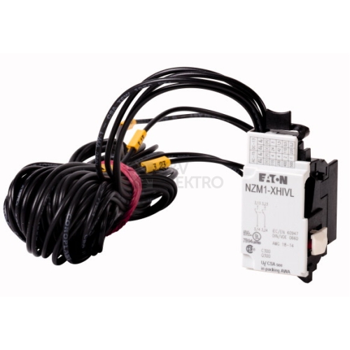 Volitelné příslušenství k řadě výkonových spínačů NZM nabízí bohaté portfolio možností využití při nasazení na celém světě. Montáž je vždy pružná a jednoduchá díky modulárním funkčním skupinám. Upozornění: Pro blokovací obvody a obvody ke snížení zátěže a také k předbíhajícímu připojování podpěťové spouště při použití s hlavním vypínačem/nouzovým vypínáním. Nepoužívejte ve spojení s předbíhajícím pomocným spínačem NZM..-XU.. nebo podpěťovou spouští NZM..-XA.. Předbíhání při zapínání a vypínání (ruční ovládání): cca 20 ms. S připojovacím kabelem 3 m namísto šroubového připojení. Lze použít pro: NZM1(-4), PN1-4, N(S)1(-4)