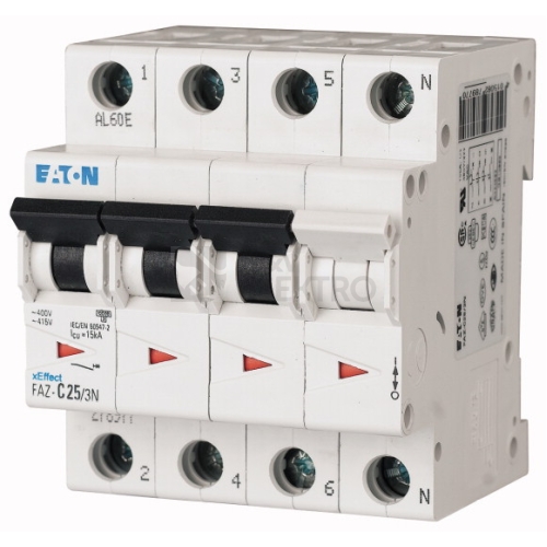 Vysoce kvalitní jistič vedení, jmenovité provozní napětí 230/400 V, jmenovitá spínací schopnost 10 kA podle UL 1077, CSA C22.2 No 235 a IEC/EN 60947-2, jmenovité povozní proudy do 63 A, spouštěcí charakteristika B, C, D