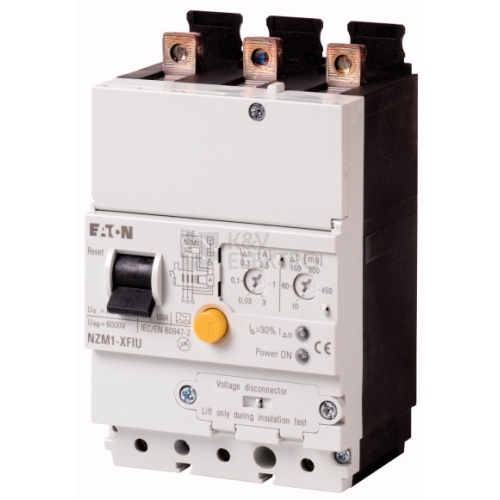 Volitelné příslušenství k řadě výkonových spínačů NZM nabízí bohaté portfolio možností využití při nasazení na celém světě. Montáž je vždy pružná a jednoduchá díky modulárním funkčním skupinám. Upozornění: podle norem IEC/EN 60947-2 není schváleno dle UL/CSA. Vhodnost k používání ve třífázových i jednofázových systémech. Citlivé na pulzní proud na principu součtového proudu. Pro výkonové jističe NZM3(4) a N1(-4) s 1 a 4 póly. Závisí na síťovém napětí Ue = 200 .. 415 V 50/60 Hz. Při I △n = 0.03 A: Doba zpoždění t v vždy pevně nastavená na 10 ms. Varovné hlášení > 30 % I △n žlutou kontrolkou LED. Spouštěcí hlášení lze dovybavit pomocí max. 2 pomocných spínačů (HIAFI): S = M22-K01, rozpínací kontakt = M22-K10 se nulují pomocí resetovací kyvné páčky. Při použití pomocných spouštěcích spínačů v bloku FI pracuje rozpínací kontakt jako spínací kontakt a spínací kontakt jako rozpínací kontakt. Dvojitý kontakt není přípustný. Nepoužívat v kombinaci se skříňkami z izolačního materiálu nebo montážními kity hlavního vypínače k vestavbě do bočních stěn s montážním úhelníkem. NZM1-XFI..R nepoužívat v kombinaci s dolním krytem NZM1-XUSA. NZM1-XFI..U nepoužívat v kombinaci s pracovní nebo podpěťovou spouští, předbíhajícím pomocným spínačem. Schopnost vypínání při jmenovitém mezním zkratovém proudu je ovlivněna namontovaným NZM1, NS1. Při použití výkonového vypínače N1 prostřednictvím předřazené pojistky, kterou je třeba instalovat. Viz Technická data. Lze použít pro: NZM1, N(S)1