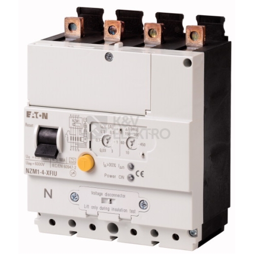 Volitelné příslušenství k řadě výkonových spínačů NZM nabízí bohaté portfolio možností využití při nasazení na celém světě. Montáž je vždy pružná a jednoduchá díky modulárním funkčním skupinám. Upozornění: podle norem IEC/EN 60947-2 není schváleno dle UL/CSA. Vhodnost k používání ve třífázových i jednofázových systémech. Citlivé na pulzní proud na principu součtového proudu. Pro výkonové jističe NZM3(4) a N1(-4) s 1 a 4 póly. Závisí na síťovém napětí Ue = 200 .. 415 V 50/60 Hz. Při I △n = 0.03 A: Doba zpoždění t v vždy pevně nastavená na 10 ms. Varovné hlášení > 30 % I △n žlutou kontrolkou LED. Spouštěcí hlášení lze dovybavit pomocí max. 2 pomocných spínačů (HIAFI): S = M22-K01, rozpínací kontakt = M22-K10 se nulují pomocí resetovací kyvné páčky. Při použití pomocných spouštěcích spínačů v bloku FI pracuje rozpínací kontakt jako spínací kontakt a spínací kontakt jako rozpínací kontakt. Dvojitý kontakt není přípustný. Nepoužívat v kombinaci se skříňkami z izolačního materiálu nebo montážními kity hlavního vypínače k vestavbě do bočních stěn s montážním úhelníkem. NZM1-XFI..R nepoužívat v kombinaci s dolním krytem NZM1-XUSA. NZM1-XFI..U nepoužívat v kombinaci s pracovní nebo podpěťovou spouští, předbíhajícím pomocným spínačem. Schopnost vypínání při jmenovitém mezním zkratovém proudu je ovlivněna namontovaným NZM1, NS1. Při použití výkonového vypínače N1 prostřednictvím předřazené pojistky, kterou je třeba instalovat. Viz Technická data. Lze použít pro: NZM1-4, N1-4