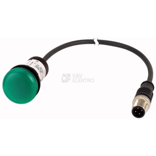 Signálky, Sortiment: RMQ compact solution, Kompletní přístroj, Konstrukční typ: plochá, Typ připojení: Kabel (černý) se zástrčkou M12A, 4-pólový, Délka kabelu: 1 M, Popis: -, Barva Čočka: zelený, Barva LED: zelený, Jmenovité provozní napětí LED: 24 V AC/DC, Stupeň krytí: IP66, IP67, IP69K (čelní), IP65 (zadní), Připojení na SmartWire-DT: ne, Normy a ustanovení: ČSN EN 60947-5-1, VDE 0660