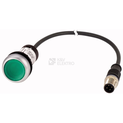 Prosvětlená ovládací hlavice tlačítka, RMQ compact solution, Kompletní přístroj, Konstrukční typ: Zapuštěné, bez aretace, Typ připojení: Kabel (černý) se zástrčkou M12A, 4-pólový, Délka kabelu: 0.5 M, Popis: -, Barva LED: zelený, Tlačítkový výplň: zelený, Panel s tlačítky prázdný, Jmenovité provozní napětí LED: 24 V AC/DC, Popis: bez, Stupeň krytí: IP66, IP67, IP69K (čelní), IP65 (zadní), Pierścień czołowy tytanowy, Připojení na SmartWire-DT: ne, S = spínací kontakt: 1 spínací kontakt, Normy a ustanovení: IEC/EN 60947-5-1, VDE 0660