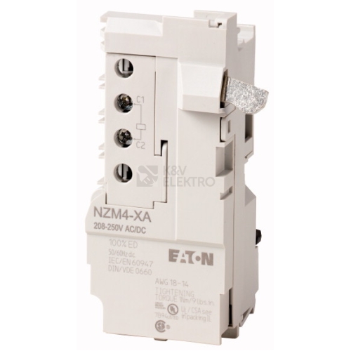 Volitelné příslušenství k řadě výkonových spínačů NZM nabízí bohaté portfolio možností využití při nasazení na celém světě. Montáž je vždy pružná a jednoduchá díky modulárním funkčním skupinám. Upozornění: spouštění spínačů při napěťovém impulzu nebo přiložení trvalého napětí. Jestliže vypínací spoušť vede napětí, brání bezpečně dotyku hlavních kontaktů spínače při pokusech o zapnutí. Vypínací spoušť nelze instalovat současně s předbíhajícím pomocným spínačem NZM..-XHIV.. nebo podpěťovou spouští NZM..-XU.. Lze použít pro: NZM4(-4), N(S)4(-4)