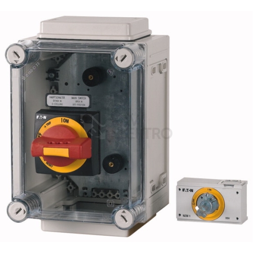 Skříň IP65, rukojeť červeno/žlutá, uzamyk, NZM1, do 63A
