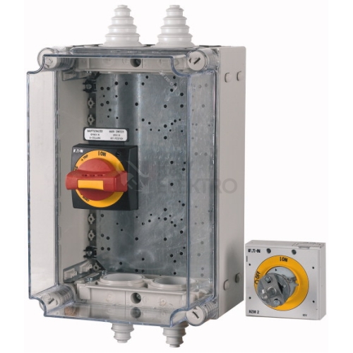 Skříň IP65, rukojeť červeno/žlutá, uzamyk, NZM2, do 200A