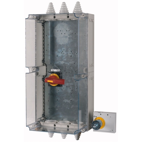 Skříň IP65, rukojeť červeno/žlutá, uzamyk, NZM3, do 400A