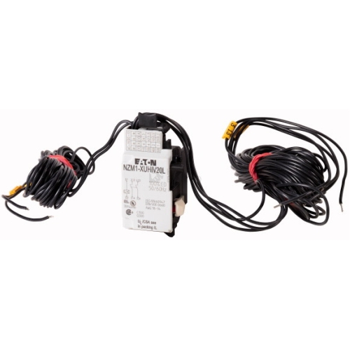 Volitelné příslušenství k řadě výkonových spínačů NZM nabízí bohaté portfolio možností využití při nasazení na celém světě. Montáž je vždy pružná a jednoduchá díky modulárním funkčním skupinám. Upozornění: k předbíhajícímu připojování podpěťové spouště při použití hlavního vypínače a také pro blokovací obvody a obvody ke snížení zátěže. Lze použít pro zařízení nouzového vypnutí ve spojení s tlačítkem nouzového vypnutí. Jestliže vypínací spoušť vede napětí, brání bezpečně dotyku hlavních kontaktů spínače při pokusech o zapnutí. Předbíhání pomocných kontaktů při zapínání a vypínání (ruční ovládání) cca 20 ms. Nepoužívejte ve spojení s dálkovým pohonem NZM..-XR.. Podpěťovou spoušť nelze instalovat současně s předbíhajícím pomocným spínačem NZM..-XHIV.. ani vypínací spouští NZM..-XA.. Lze použít pro: NZM1(-4), N(S)1(-4)