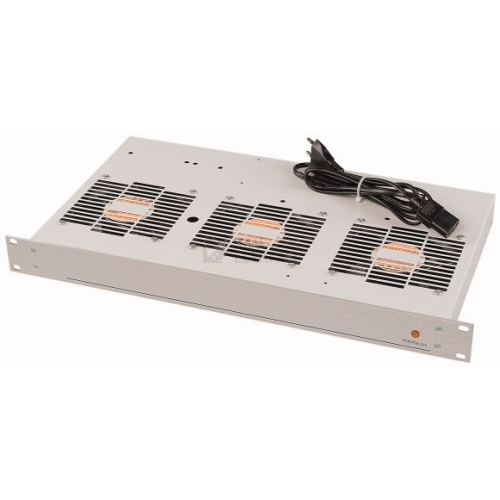 Zásuvka ventilátoru 19z: zásuvka ventilátoru 19z k upevnění na sběrnicích 19z, pro aktivní větrání skříně, zamezuje se tvorba tepelných center, doporučuje se použití spodního kryti se zasouváním filtru, vestavná výška: 1 RU